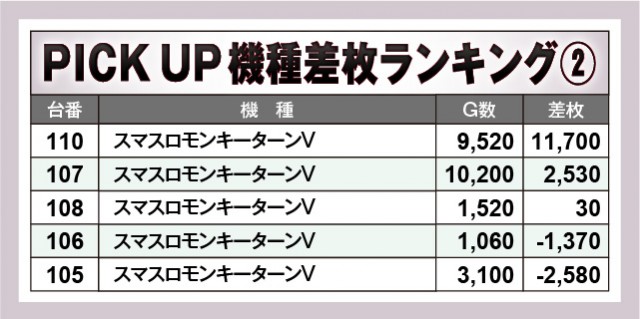 『スマスロモンキーターンV』にて万枚OVERが発生しており、さらに同機種は終日を通して打ち込まれていたことから、相当な手応えを感じられたことが窺える。それは『スマスロ北斗の拳』も同様で、上表に名を連ねた機種はいずれも大きなポテンシャルを秘めていたのだろう。ファンはその様子を感じ取ってか終日を通して閉店までレバーを叩き続け、結果として万回転OVERも飛び出たのは好印象であるばかりだ。