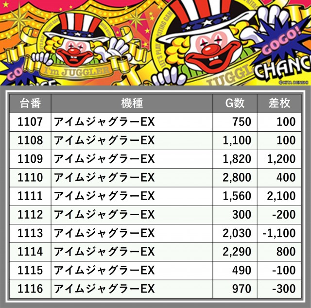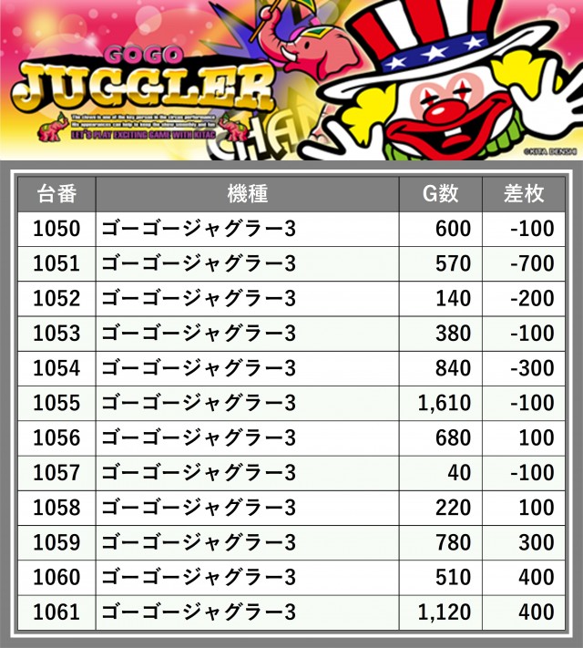 厳選された取材対象機種をはじめ、その他スロット全体から好記録が飛び出した!プレイヤーが楽しんだ1日を下記データにて振り返ってみて欲しい。