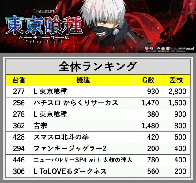 厳選された取材対象機種をはじめ、その他スロット全体から好記録が飛び出した!プレイヤーが楽しんだ1日を下記データにて振り返ってみて欲しい。
