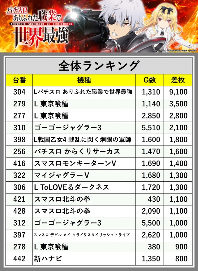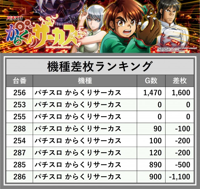 ※差枚数順に掲載しています