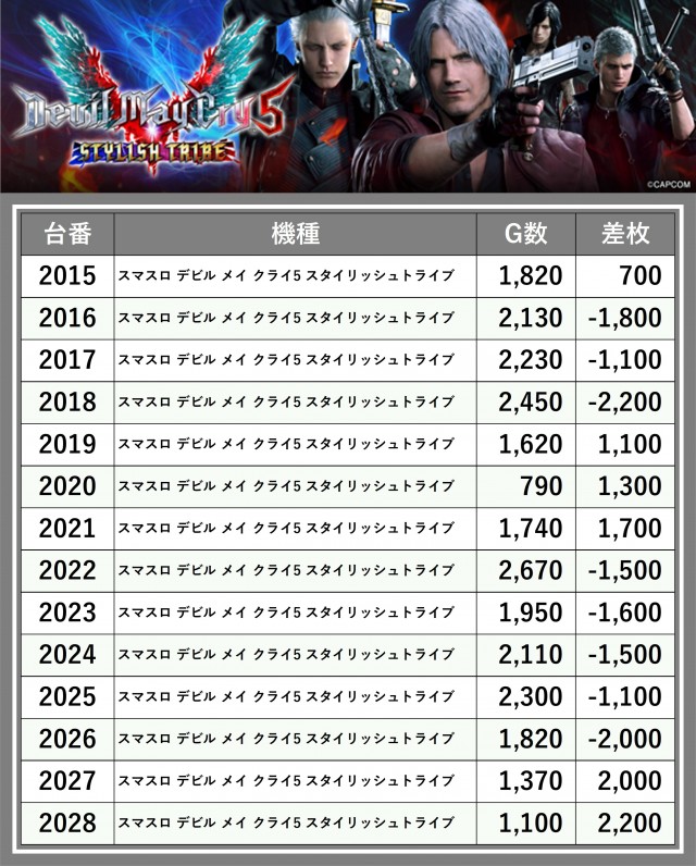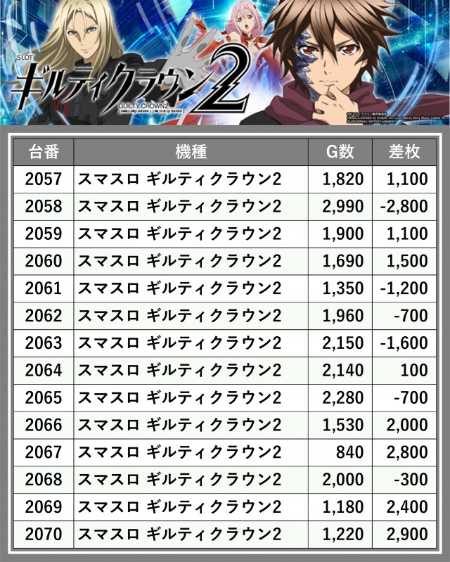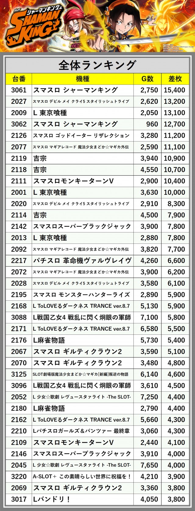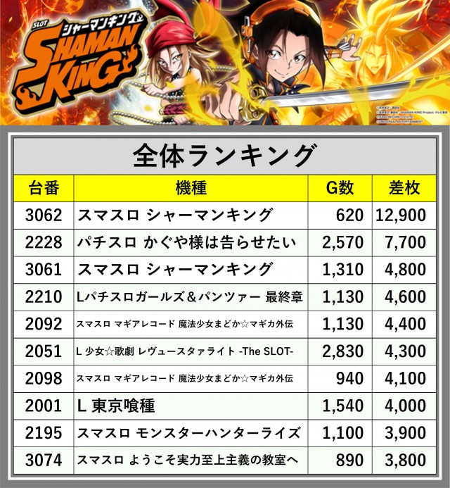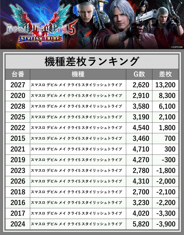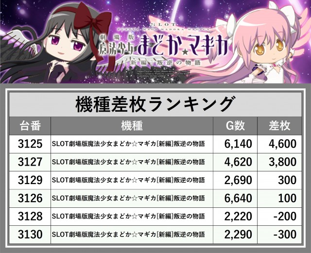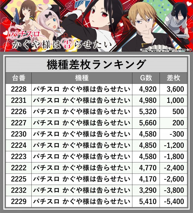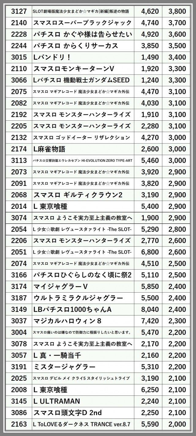 ※差枚数順に掲載しています