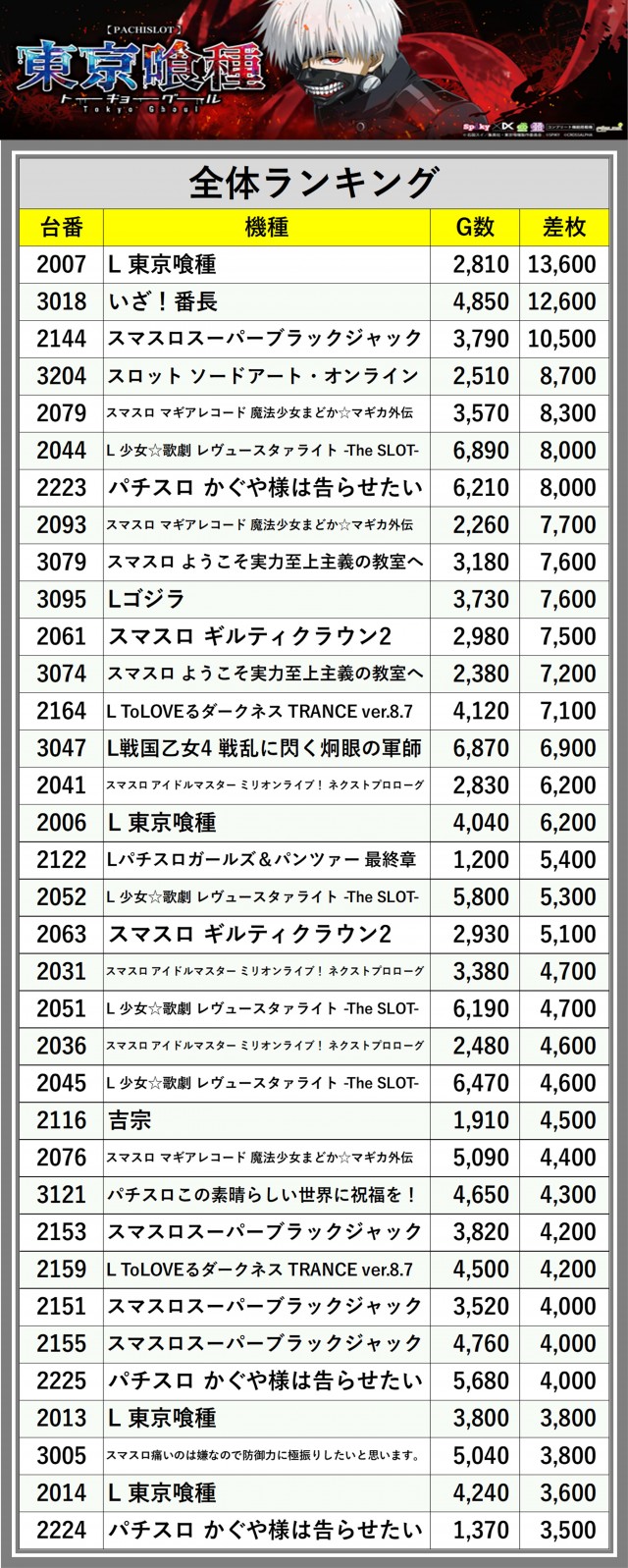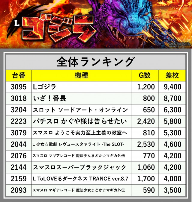 厳選された取材対象機種をはじめ、その他スロット全体から好記録が飛び出した!プレイヤーが楽しんだ1日を下記データにて振り返ってみて欲しい。