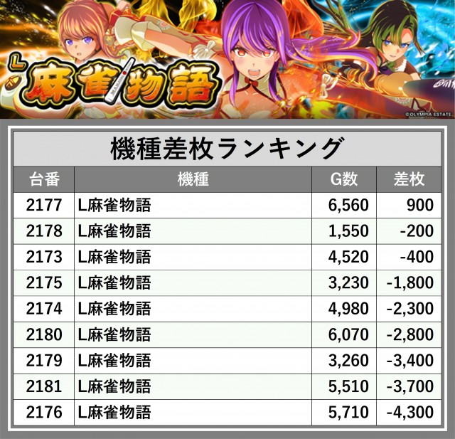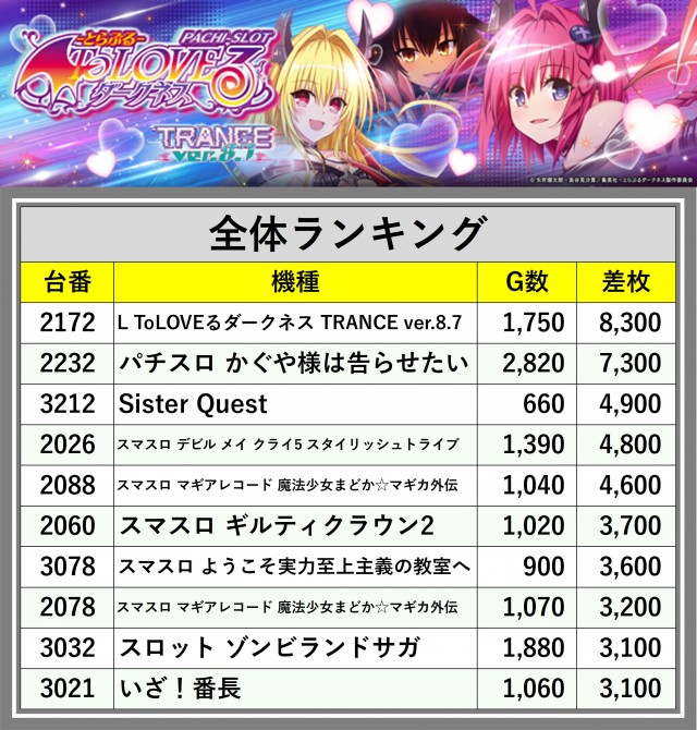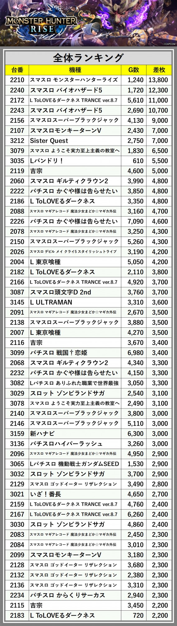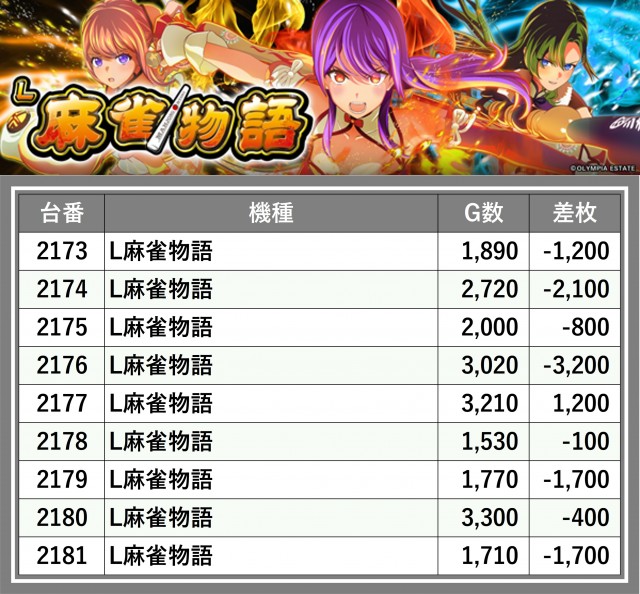 厳選された取材対象機種をはじめ、その他スロット全体から好記録が飛び出した!プレイヤーが楽しんだ1日を下記データにて振り返ってみて欲しい。
