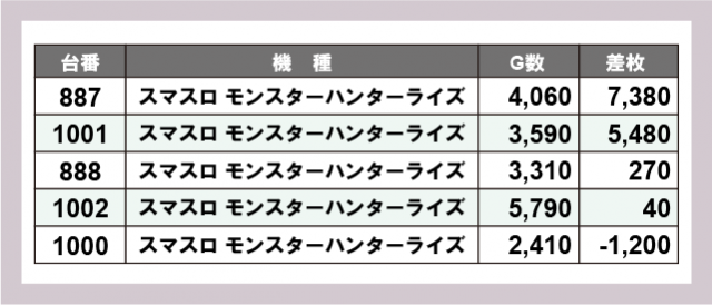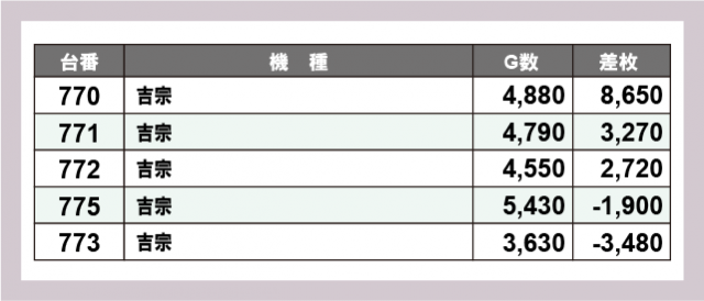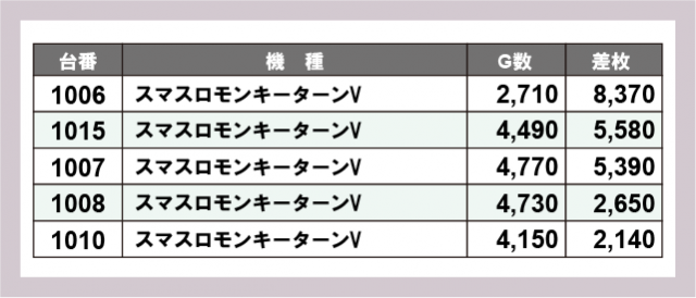 ※差枚数順に掲載しています