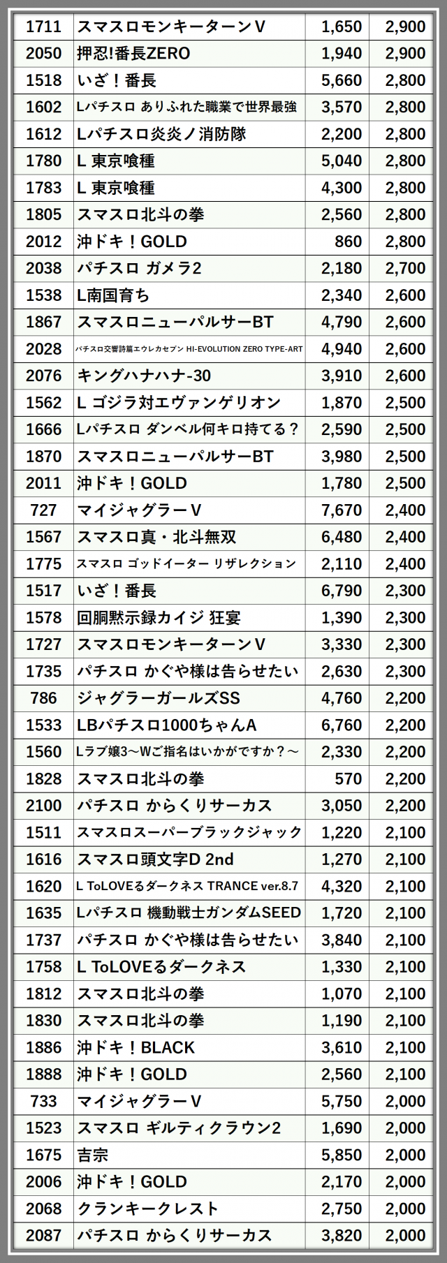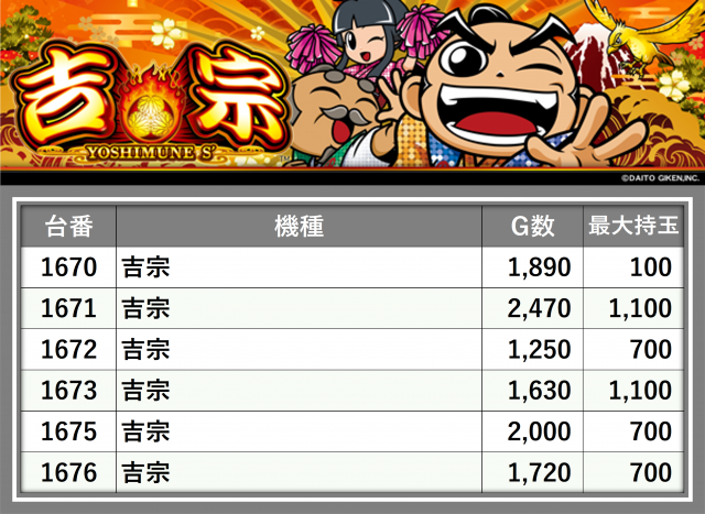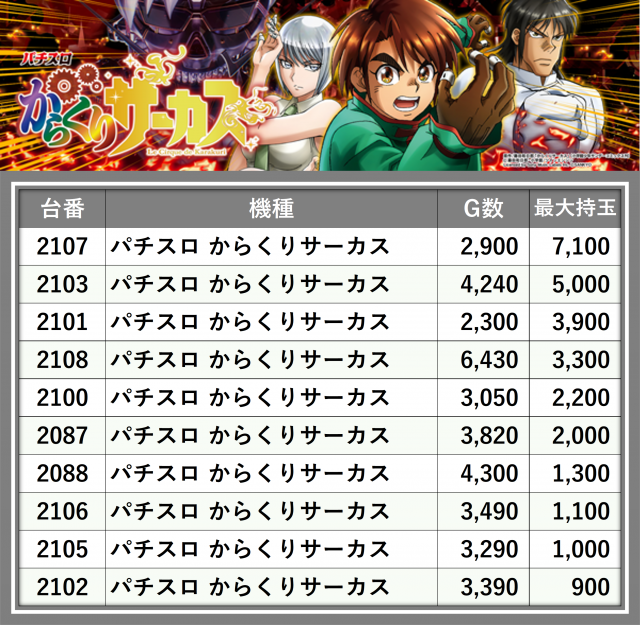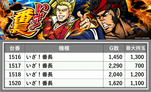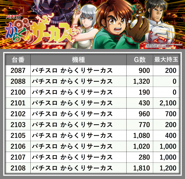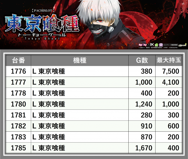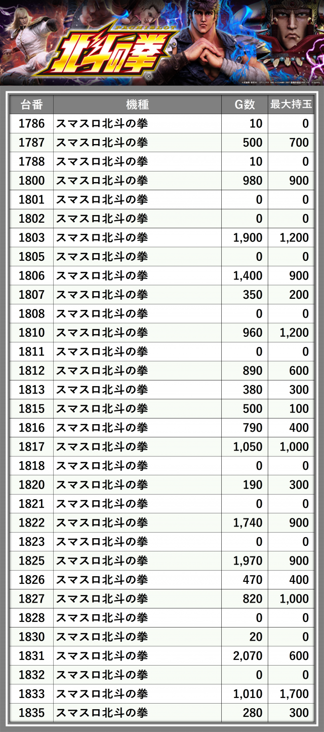※台番順に掲載しています