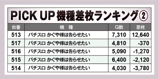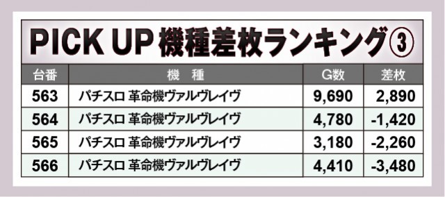 万枚OVERを放った『パチスロ からくりサーカス』『パチスロ かぐや様は告らせたい』の存在感は大きく、『パチスロ 革命機ヴァルヴレイヴ』も含め、高い活気と熱気を披露していたのが鮮烈であるばかり。特に『パチスロ からくりサーカス』は半数以上でプラス差枚数を築いているため、遊技していたファンは高揚感を抑えながらレバーを叩いていたに違いない。