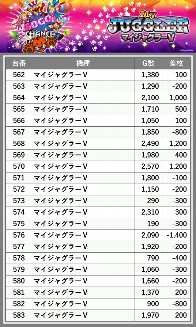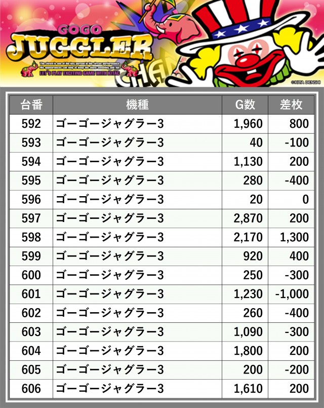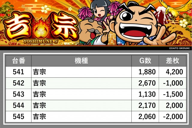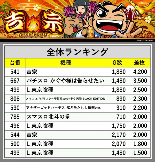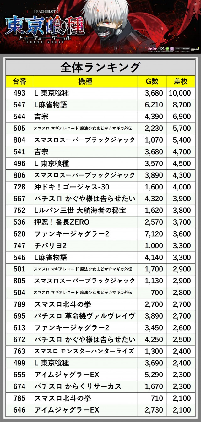 厳選された取材対象機種をはじめ、その他スロット全体から好記録が飛び出した!プレイヤーが楽しんだ1日を下記データにて振り返ってみて欲しい。