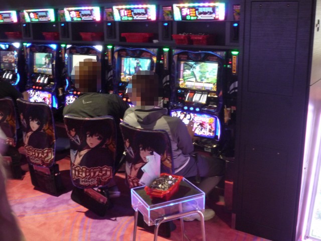 「パチスロ北斗の拳 強敵」や「忍魂 〜暁ノ章〜」なども微笑ましい状況。嬉しそうにレバーを叩くプレイヤーの姿が印象に残っている。