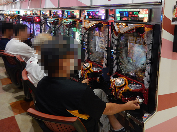 16時を過ぎたころの4円パチンコを見てみると、ぱちんこCR北斗の拳シリーズや「CRスーパー海物語IN沖縄4」をはじめとした海物語シリーズなど、定番機種を中心に高稼働。機種のポテンシャルを引き出しているプレイヤーを多数目撃しており、シマ全体が活気で満ちあふれていた。