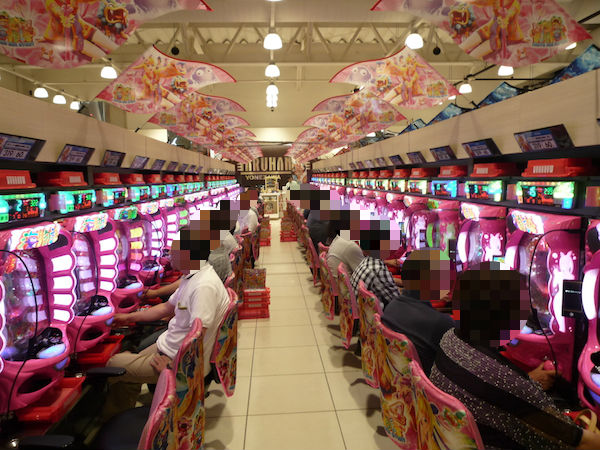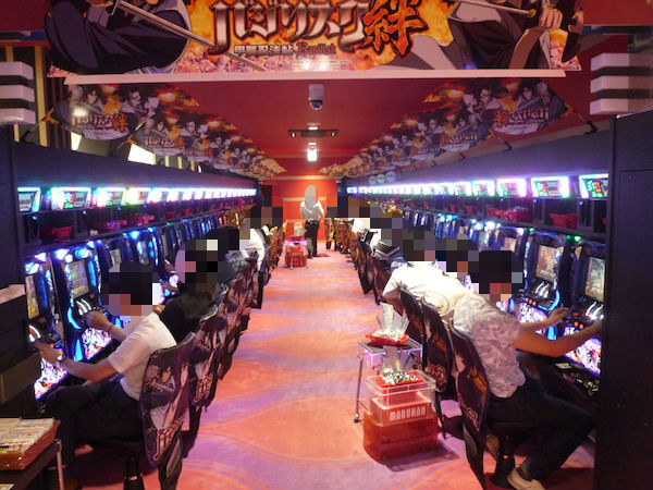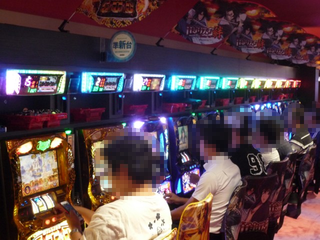 取材日にはたくさんのプレイヤーが来店しており、パチンコ・パチスロの各シマで明るい笑顔がみられた。