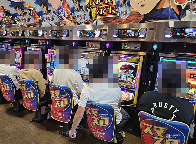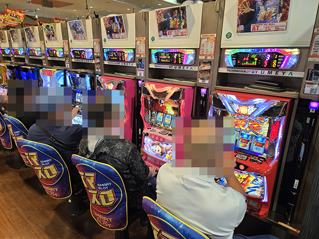 「スマスロ北斗の拳」でも、プレイヤーたちはうれしそうに遊技中。