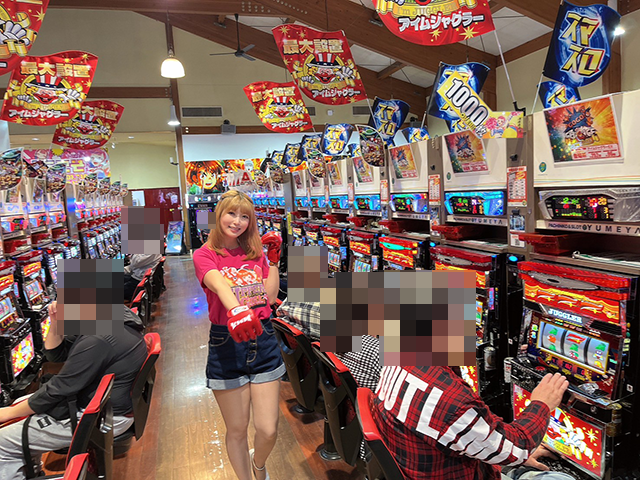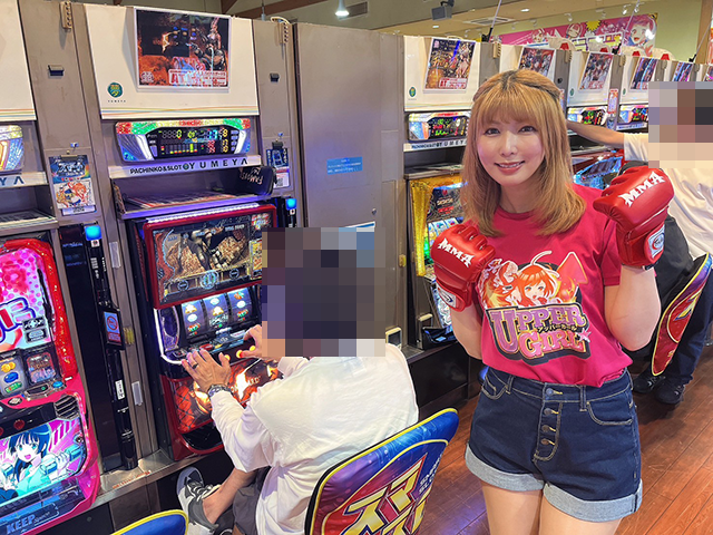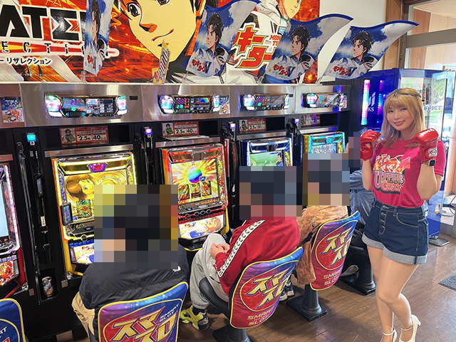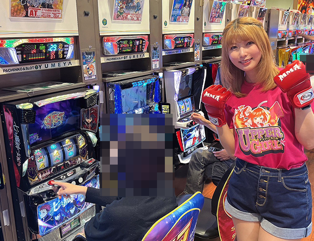 『パチスロ炎炎ノ消防隊』にも笑みを浮かべている姿があり、さまざまな機種で遊技を満喫しているように思いました♪