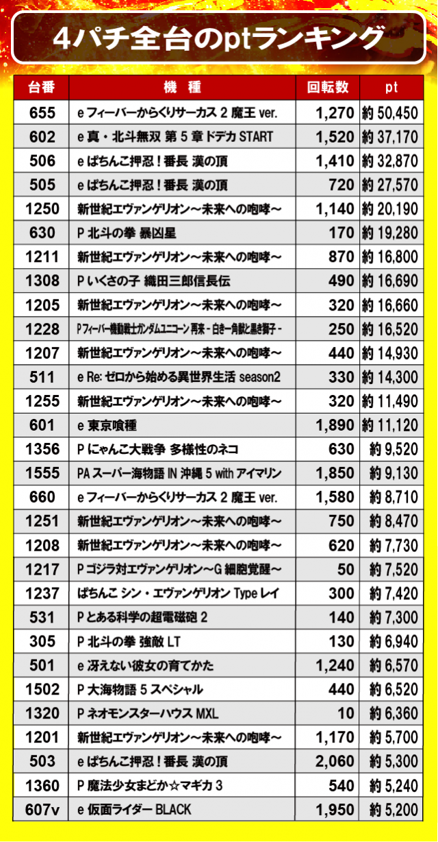 ②4パチ全台のptランキング
