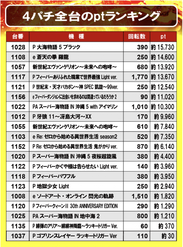 ※記事内のpt表記はぱちタウン独自調査に基づくものです。ご了承ください。