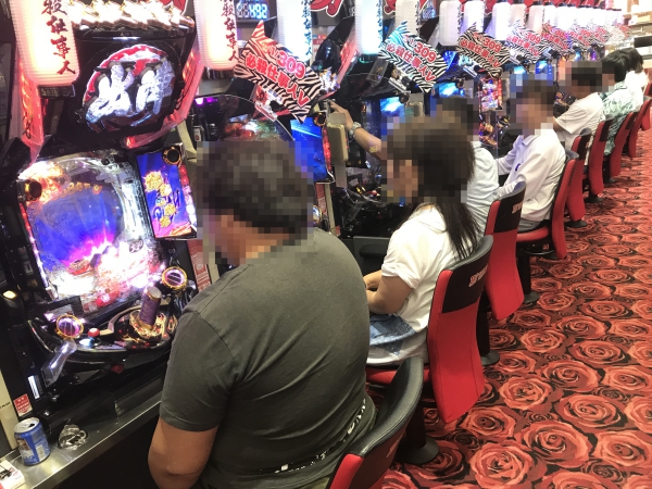 4円パチンコでは、新台の「CRリング 終焉ノ刻」や「CRぱちんこ必殺仕事人Ⅴ」、「CRスーパー海物語IN沖縄4」などが盛況。目をひくようなパフォーマンスを披露しているプレイヤーが多く、鮮やかな光景もみられた。