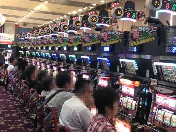ボーナスタイプでは、定番のジャグラーシリーズやハナハナシリーズが大盛り上がり。プレイヤーからの信頼を得ていることが、表情から見て取れた。