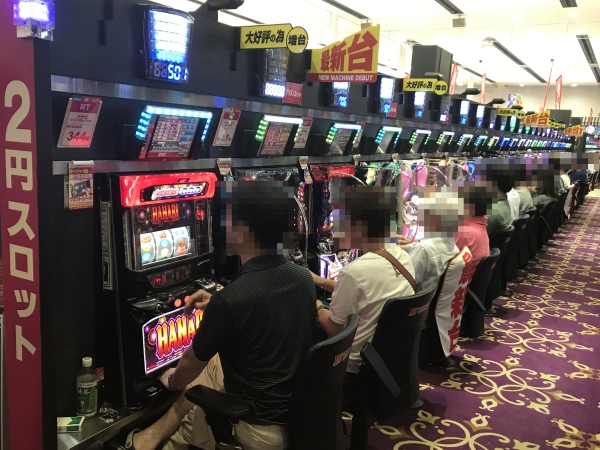 5円・2円の低貸しスロットコーナーは、コーナー全体がお祭り状態。いたる所で笑顔が見られ、有意義な時間をすごせていることが伝わってきた。