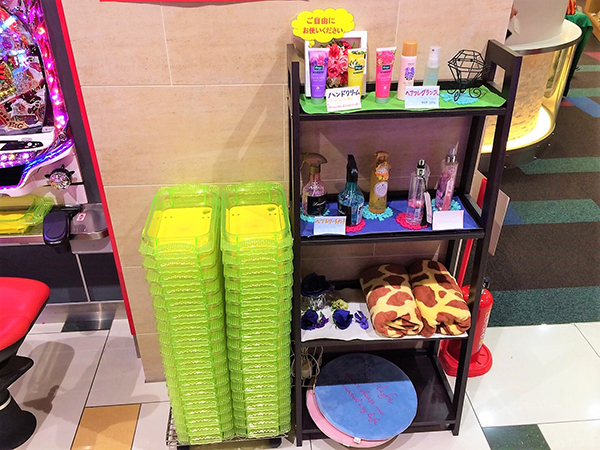 遊技台周辺に残されたおしぼりを片付ける姿も確認しており、気持ち良く遊技が出来る環境を整えていることがうかがえた。また、無料ロッカーや充実したアメニティ、フランクフルトの屋台など、プレイヤー目線でのサービス面も嬉しいポイント。
