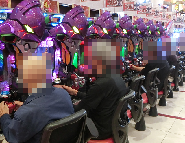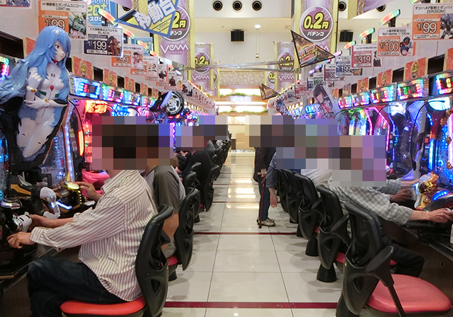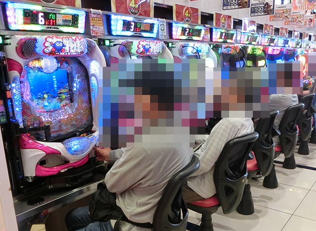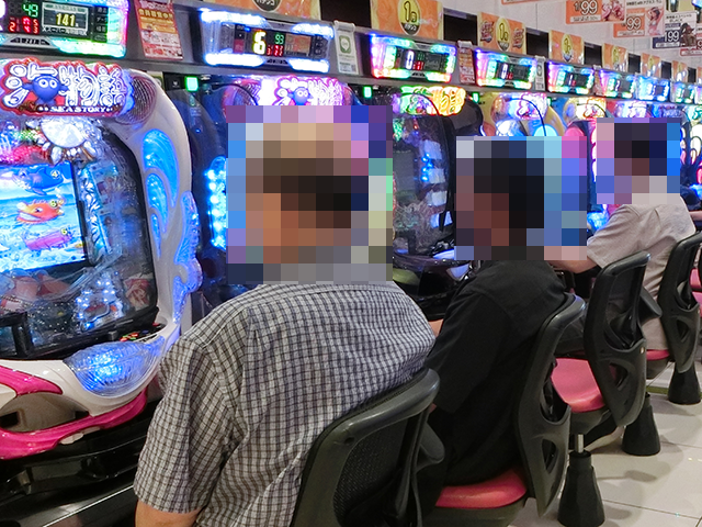 0.2円パチンコの「ぱちんこ シン・エヴァンゲリオン Type レイ」や「P大海物語4スペシャルBLACK」などにも、笑顔で遊技をおこなっている姿があった。