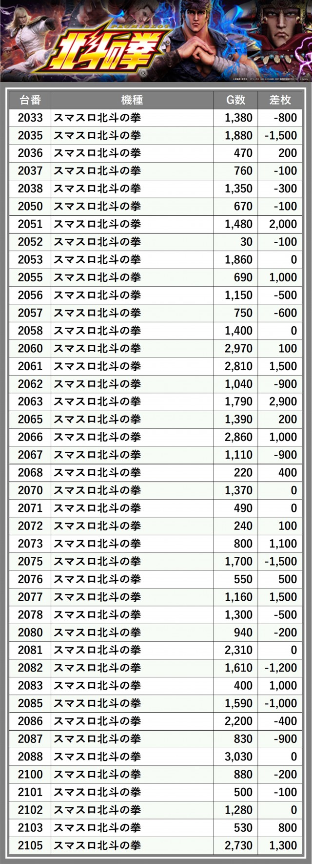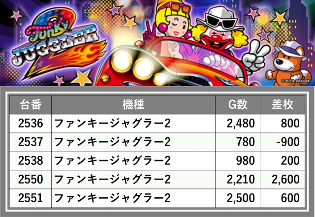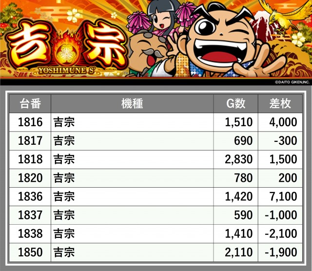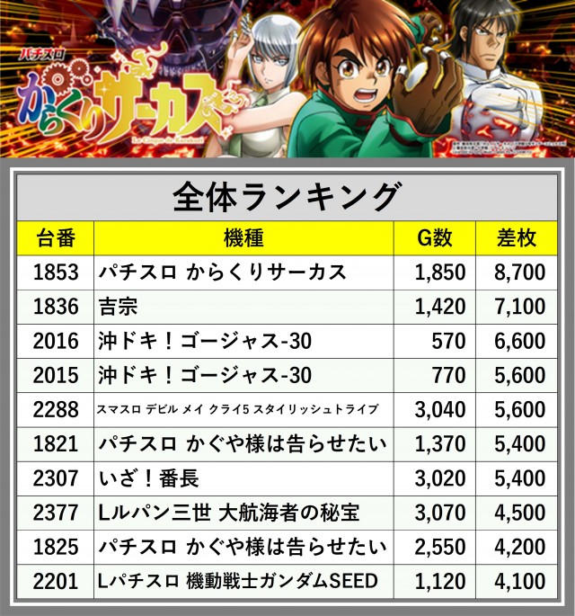 厳選された取材対象機種をはじめ、その他スロット全体から好記録が飛び出した!プレイヤーが楽しんだ1日を下記データにて振り返ってみて欲しい。