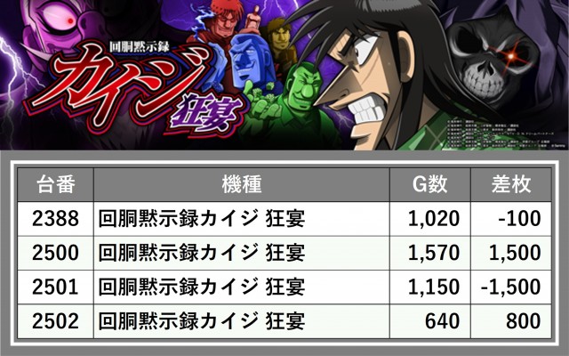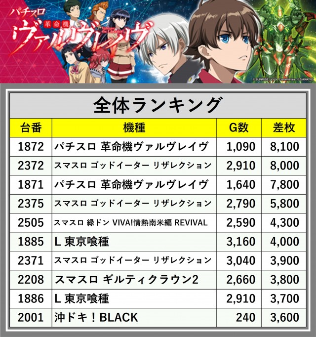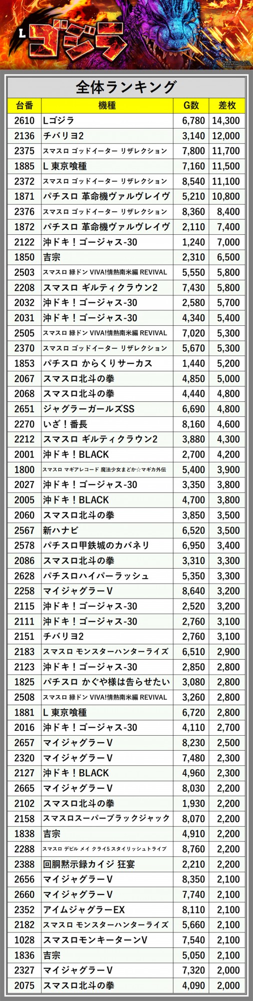 厳選された取材対象機種をはじめ、その他スロット全体から好記録が飛び出した!プレイヤーが楽しんだ1日を下記データにて振り返ってみて欲しい。