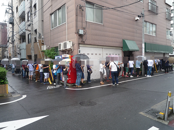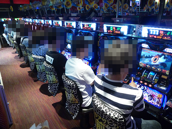 取材日となった7月1日は雨が降っていたにもかかわらず、開店前からおよそ150名のプレイヤーが集合。長い行列からは、ホールに対する信頼の大きさがうかがえた。