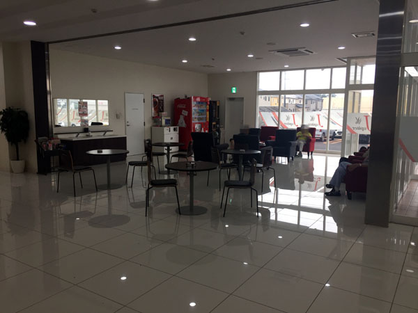 店内にはレストコーナーが2箇所あるため、どちらか近い方で休めるのは嬉しい。また、新台のお知らせPOPが目立つように配置されており、一見のプレイヤーであってもお目当てのすぐに台を見つけることができる。