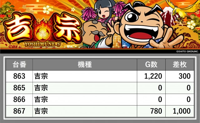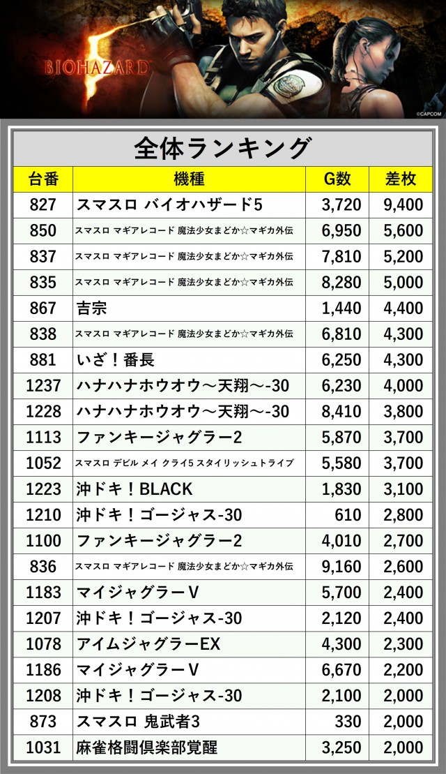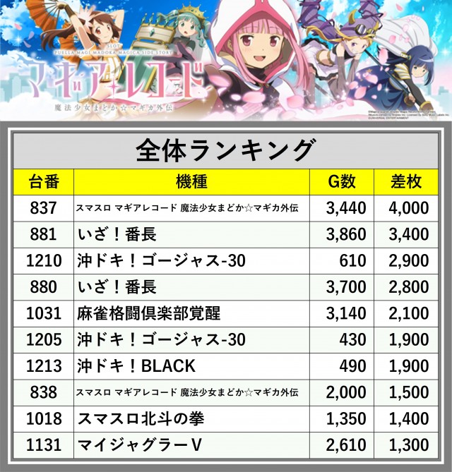 厳選された取材対象機種をはじめ、その他スロット全体から好記録が飛び出した!プレイヤーが楽しんだ1日を下記データにて振り返ってみて欲しい。