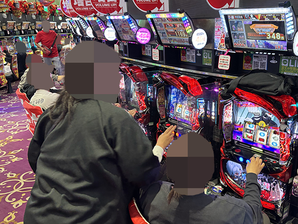 5.5円パチスロの注目度も高く、空き台が見当たらないほどの支持を集めていた。