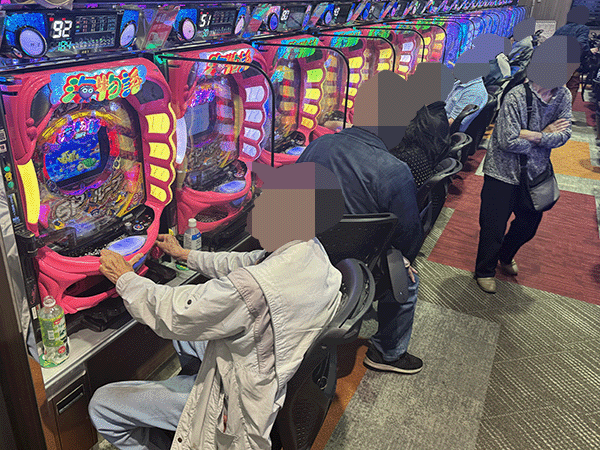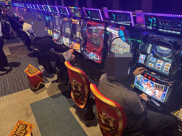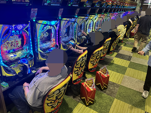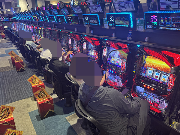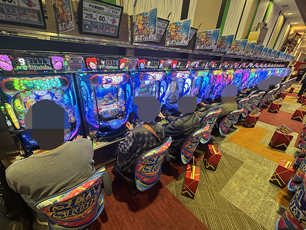 取材時は既に多くのプレイヤーが集結し、パチンコ・パチスロを問わずにぎやかな状況となっていた。