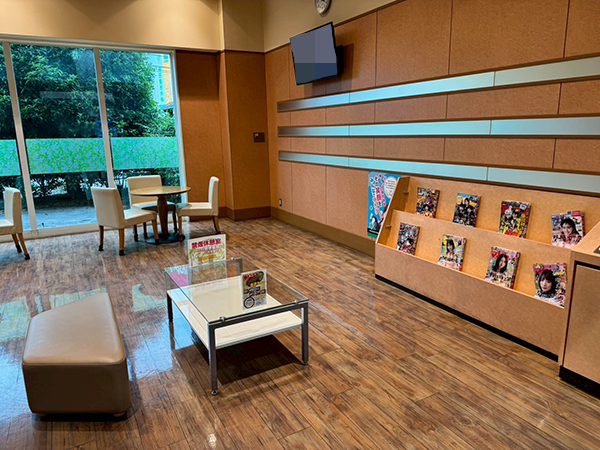 同店のレストスペースは広々として実に開放的。雑誌やテレビなども用意されており、有意義な休憩時間を送ることができそうだ。