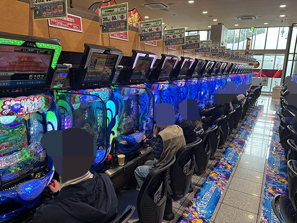 店内では貸し玉料金を問わず様々な機種で、心ゆくまで楽しむプレイヤーの姿が見られた。