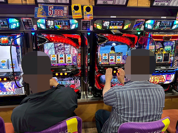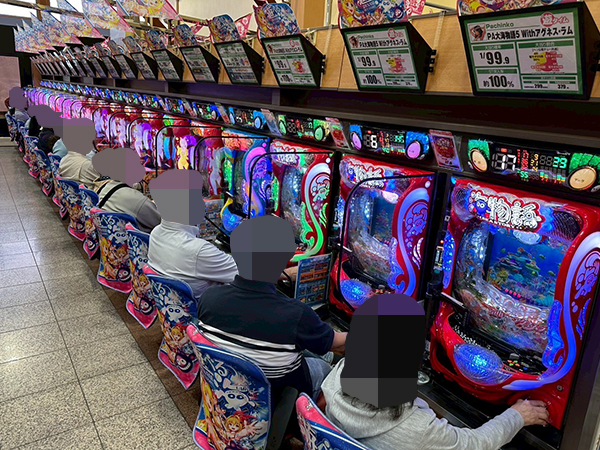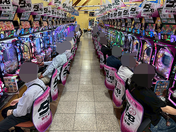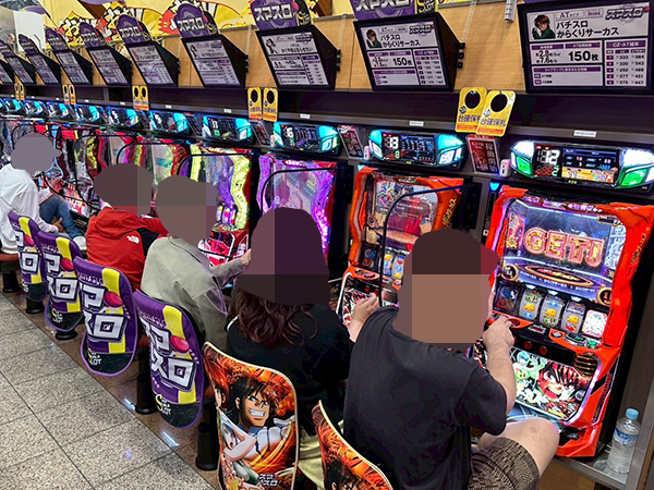 取材時は既に多くのプレイヤーが集結し、パチンコ・パチスロを問わずにぎやかな状況となっていた。