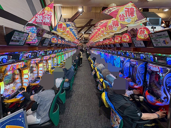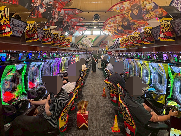 取材時は既に多くのプレイヤーが集結し、パチンコ・パチスロを問わずにぎやかな状況となっていた。
