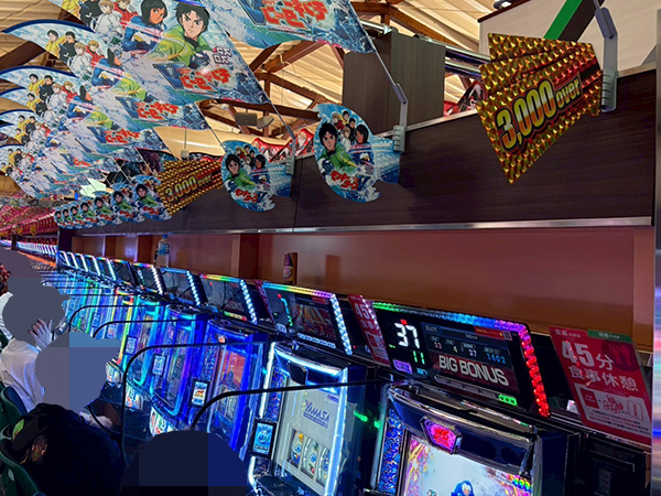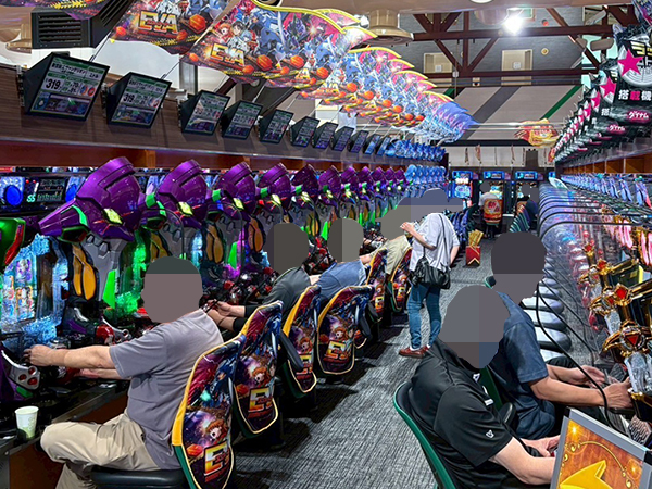 14時ごろの4円パチンコでは、「e 東京喰種」や「eフィーバーからくりサーカス2 魔王ver.」、「新世紀エヴァンゲリオン〜未来への咆哮〜」でプレイヤーが華麗なパフォーマンスを披露。微笑ましいシーンを随所で目にしている。