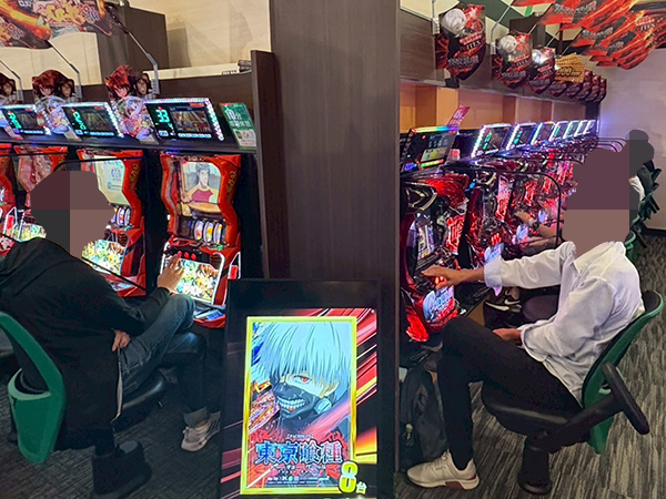 「L 東京喰種」や「パチスロ からくりサーカス」、「スマスロ デビル メイ クライ5 スタイリッシュトライブ」では機種のポテンシャルをフルに活かすプレイヤーが見られ、実に華やかな光景が広がっていた。