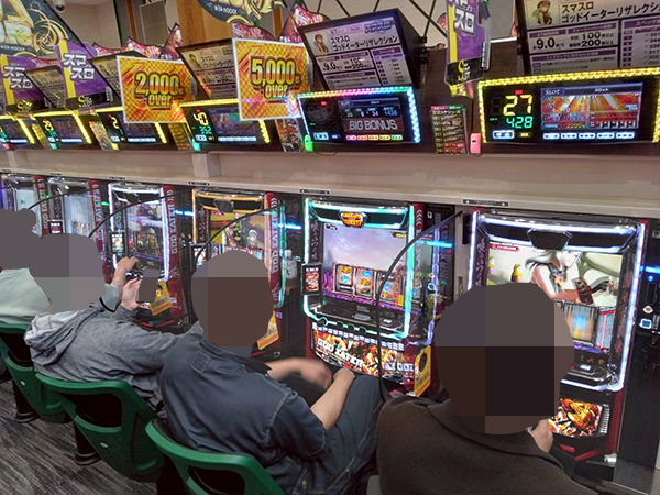 「スマスロスーパーブラックジャック」や「L 東京喰種」、「マイジャグラーⅤ」も活況の様子。機種のポテンシャルを最大限に発揮したプレイヤーを目撃している。