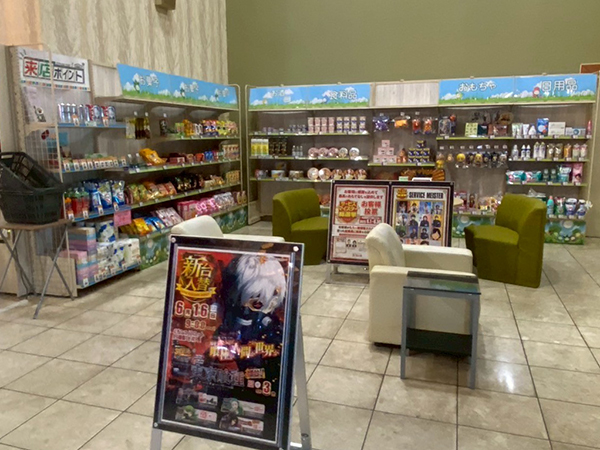 景品コーナーにはお菓子・インスタント食品・酒類など多彩なアイテムが揃っており、プレイヤーたちの目を引いていた。