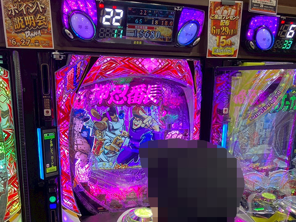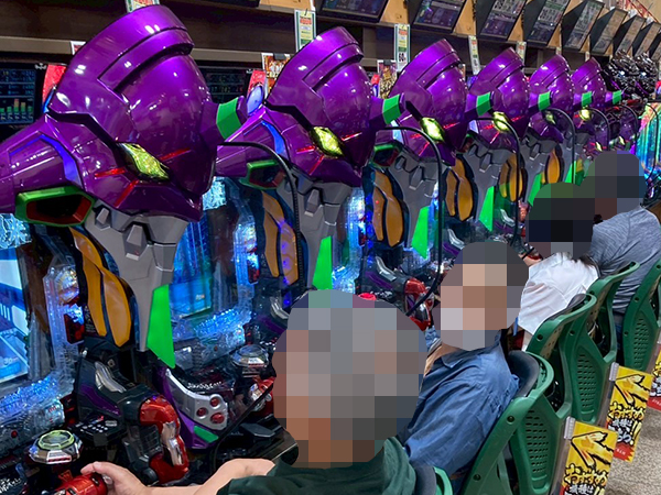 14時ごろの4.386円パチンコでは「新世紀エヴァンゲリオン〜未来への咆哮〜」や「eぱちんこ押忍!番長 漢の頂」で好調なプレイヤーが多数見受けられ、時折見せる嬉しそうな表情が印象に残っている。