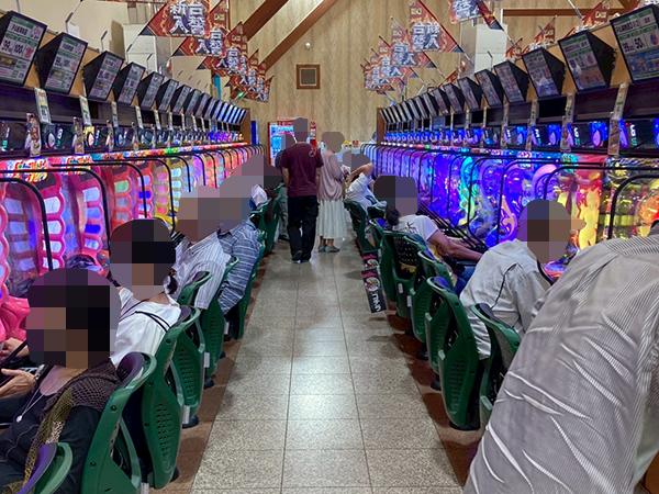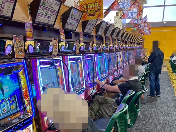 500円/90枚パチスロの支持も厚く、様々な機種で楽しそうにレバーを叩くプレイヤーが見られた。