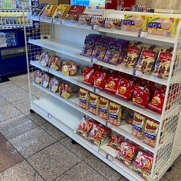 景品コーナーにはお菓子・インスタント食品・酒類など多彩なアイテムが揃っており、プレイヤーたちの目を引いていた。