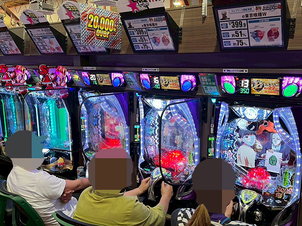 「e 東京喰種」などのラッキートリガー機では好調なプレイヤーが見られ、実に華やかな光景が広がっていた。