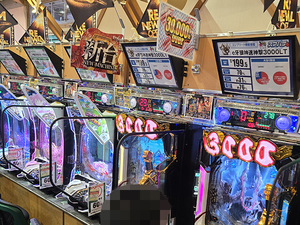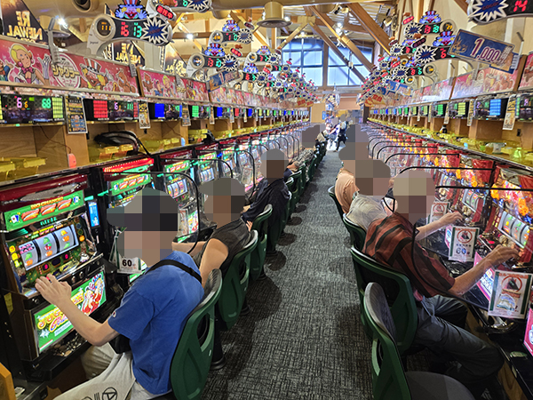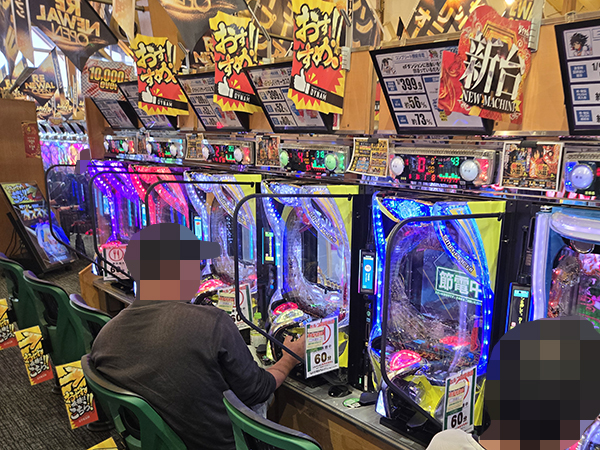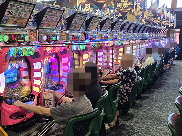 取材時は既に多くのプレイヤーが集結し、パチンコ・パチスロを問わずにぎやかな様相となっていた。