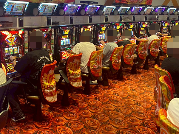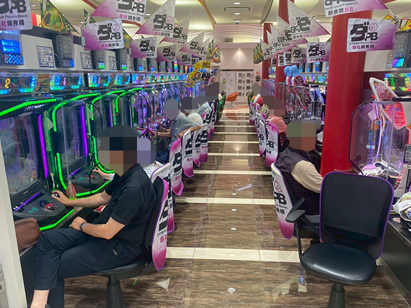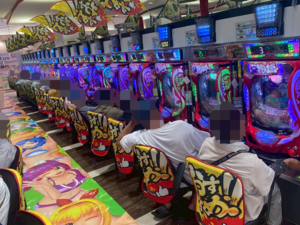 取材時は多くのプレイヤーが来店。パチンコ・パチスロともに、様々な機種が支持を得ていた。