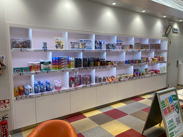 景品コーナーには日用品・インスタント食品・酒類など多彩なアイテムが揃っており、プレイヤーたちの目を引いていた。