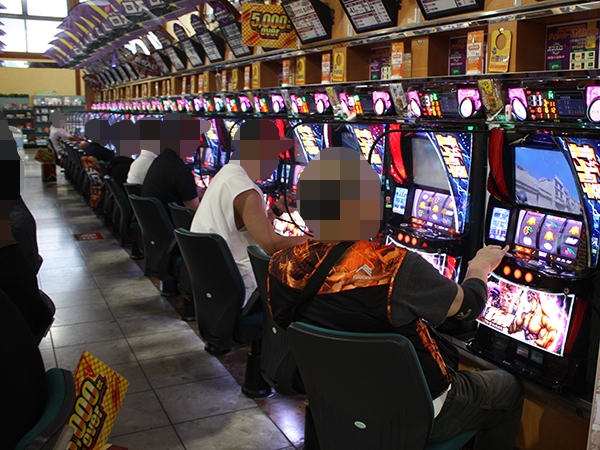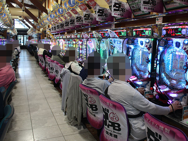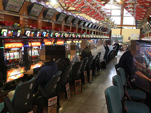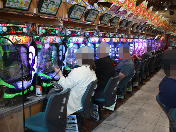 取材時は既に多くのプレイヤーが集結し、パチンコ・パチスロを問わずにぎやかな状況となっていた。