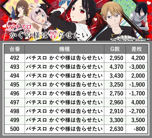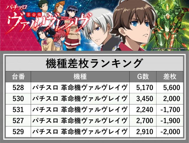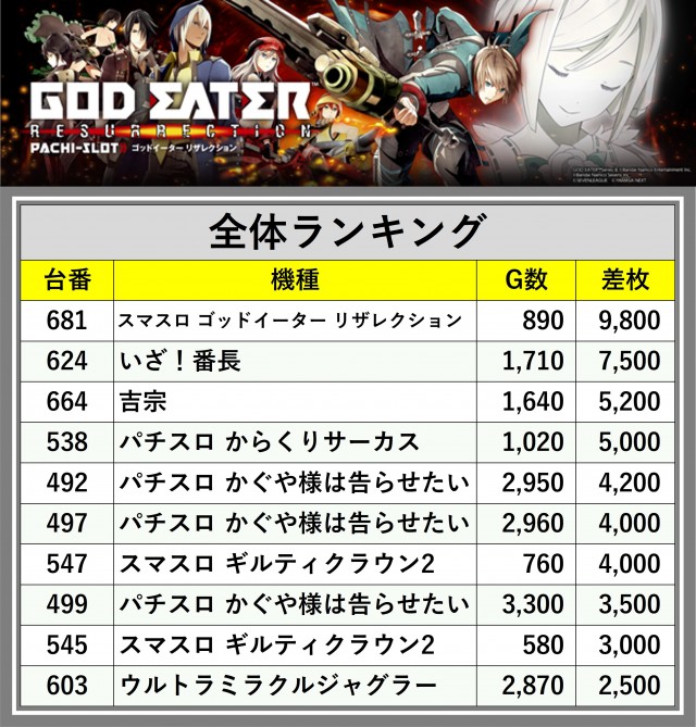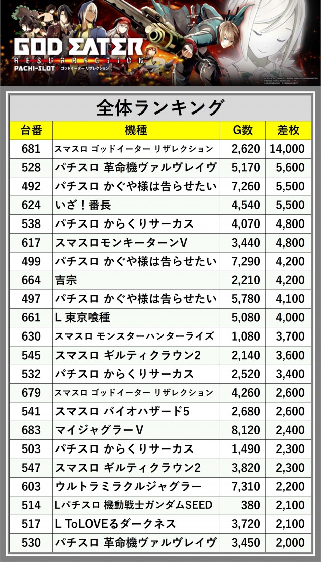 ※差枚数順に掲載しています