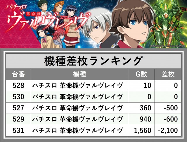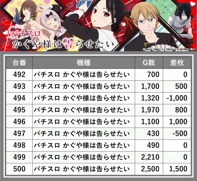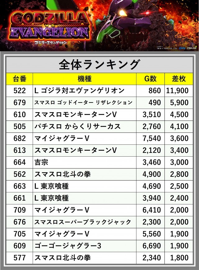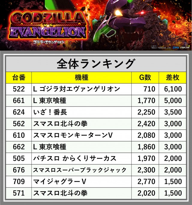 ※差枚数順に掲載しています