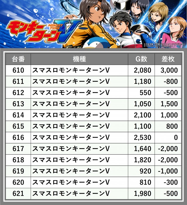 厳選された取材対象機種をはじめ、その他スロット全体から好記録が飛び出した!プレイヤーが楽しんだ1日を下記データにて振り返ってみて欲しい。