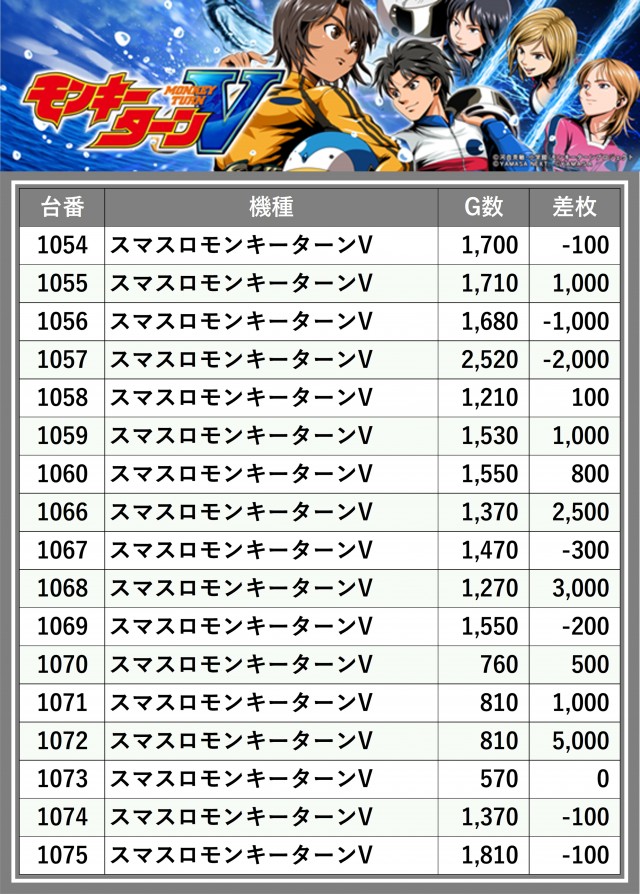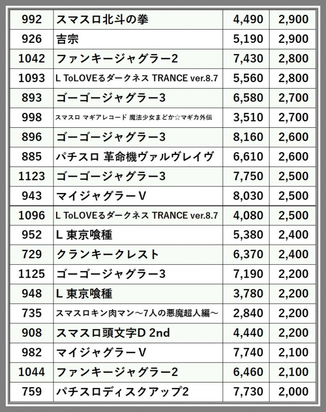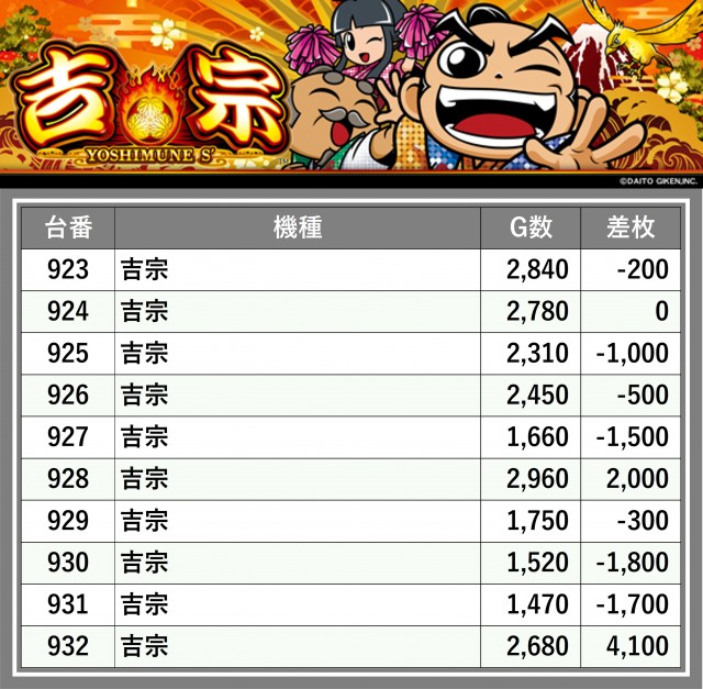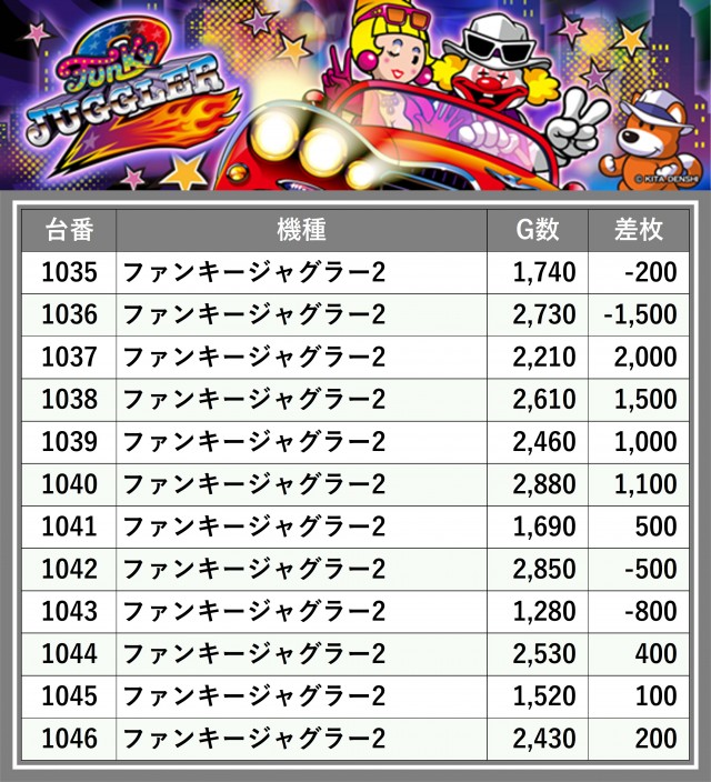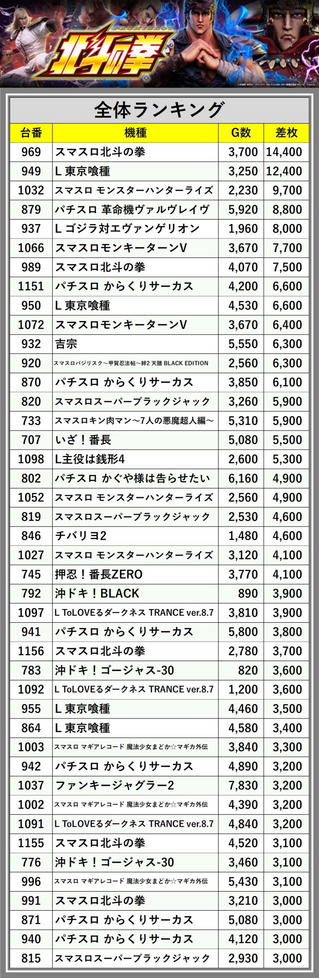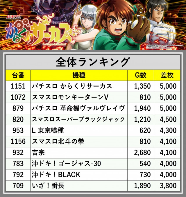 厳選された取材対象機種をはじめ、その他スロット全体から好記録が飛び出した!プレイヤーが楽しんだ1日を下記データにて振り返ってみて欲しい。